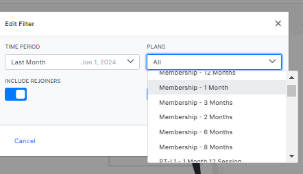 Can we put a single filter to see separate report of new PT joiner or Gym membership.