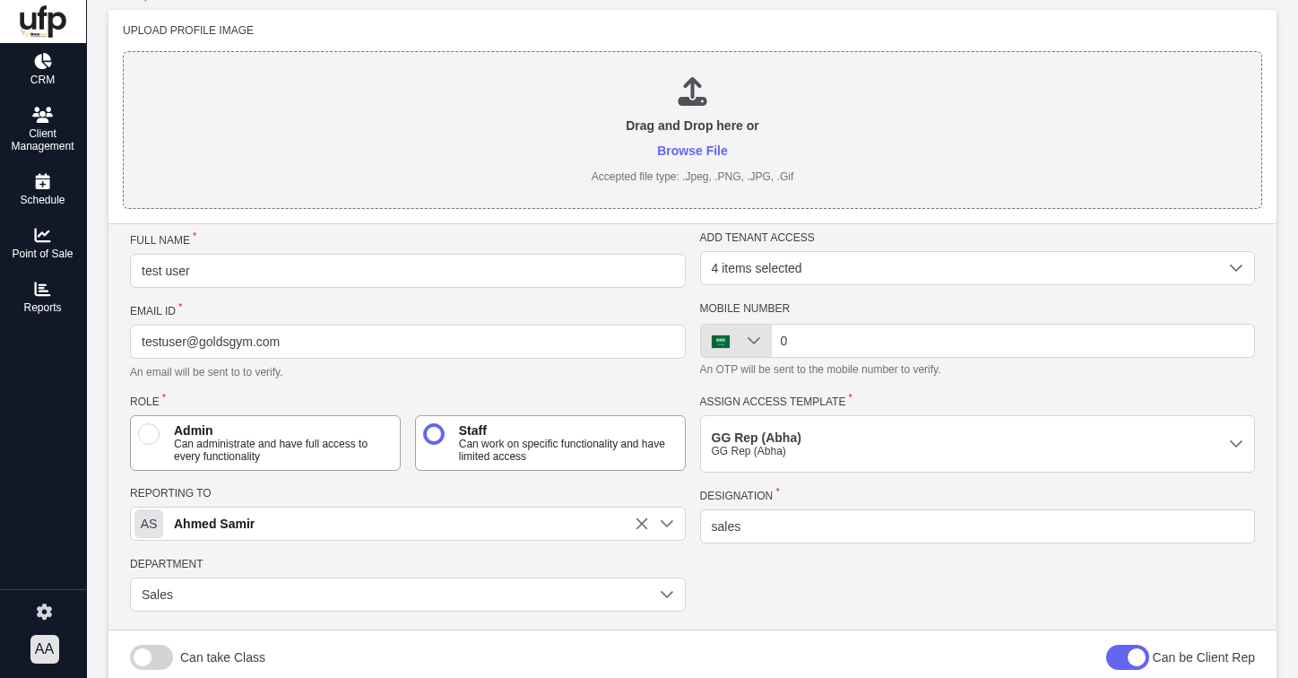 as we have discused with Ms Sana in last meeting that we want some sales staff to restrict access of POS to avoid making client memebrships or any payemnt inFF system becasue they did wrong entry many times
